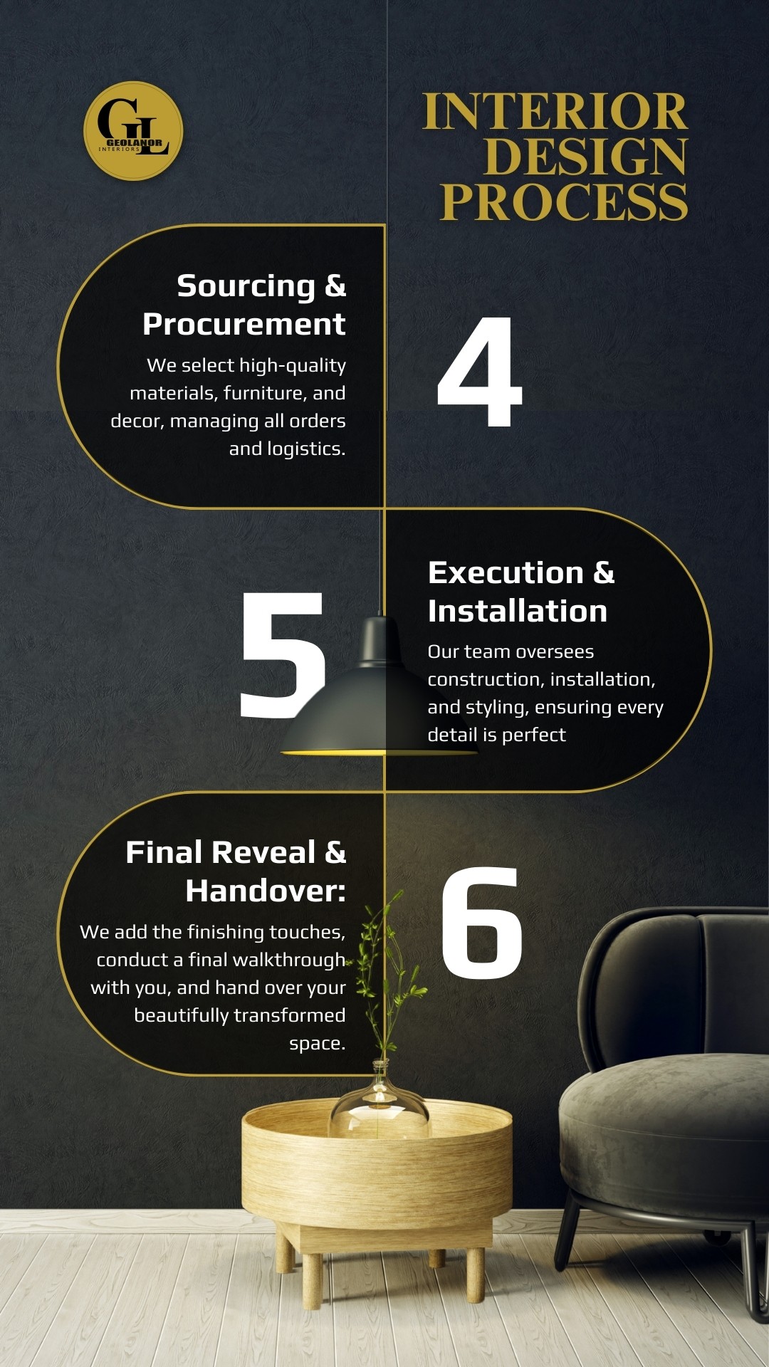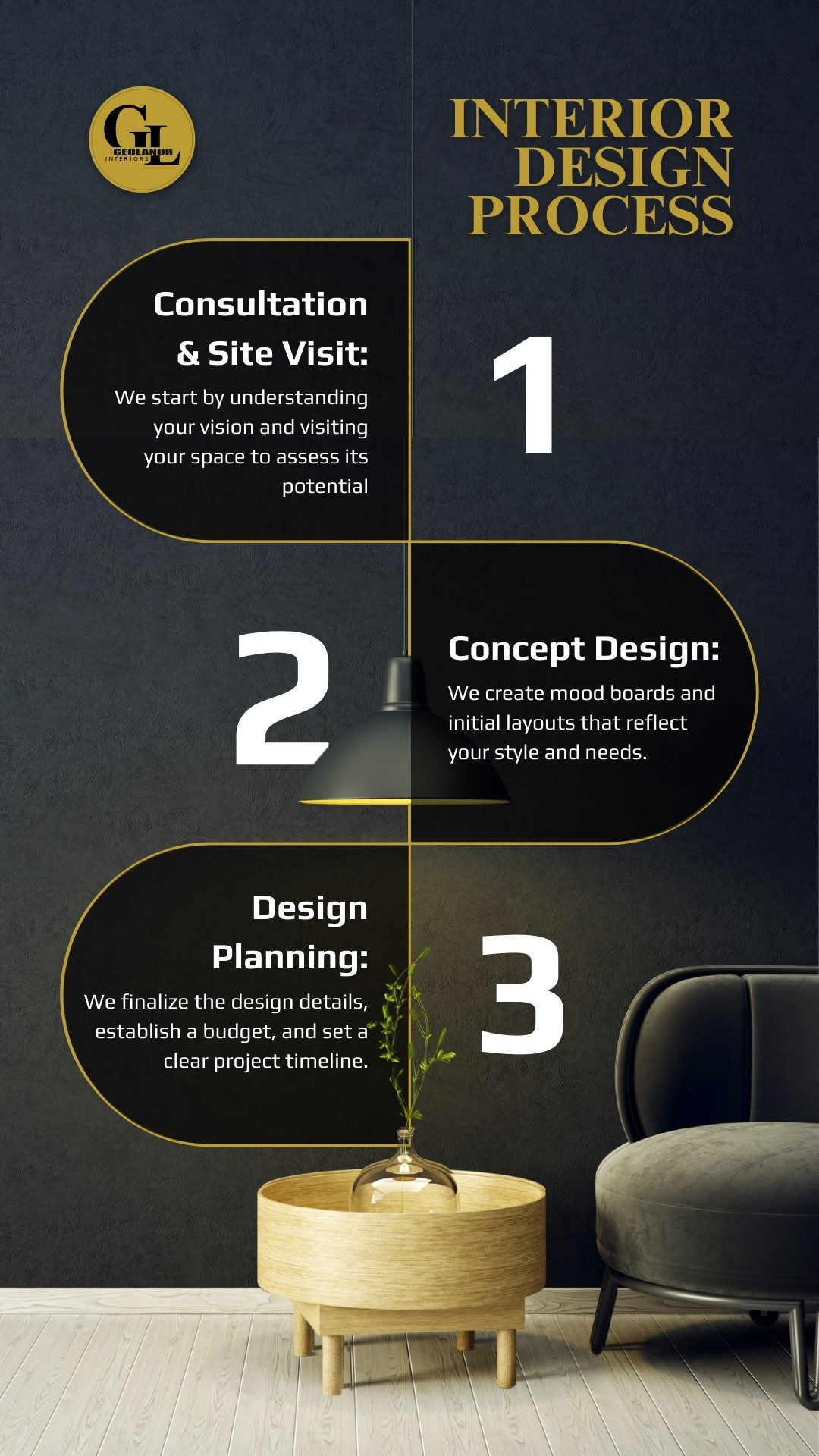 To create visually stunning social media posts that showcase elegant designs, inspire creativity, and highlight the transformative power of interior design, building trust and engagement across platforms.